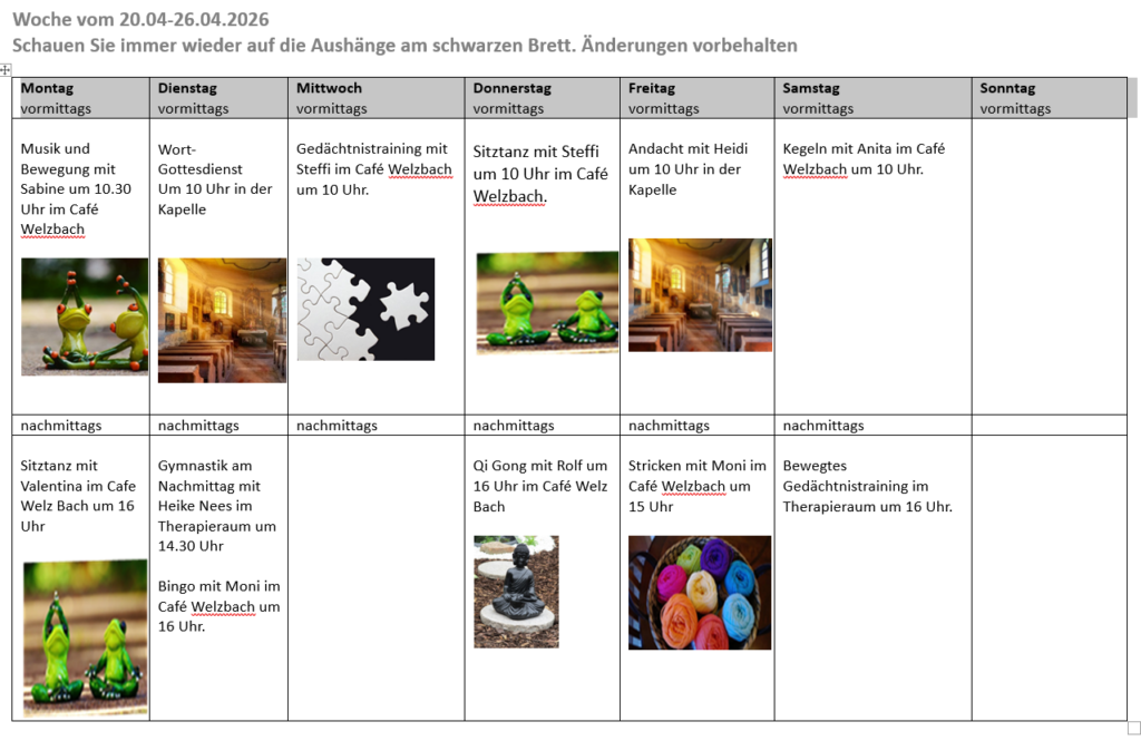 Am vergangenen Samstag fand in unserem Café am Welzbach eine fröhliche Aktivierungsrunde mit Bewegung und Musik statt. Unter der Anleitung unserer Sozialdienstmitarbeiterin Anita Barnikel konnten unsere Bewohnerinnen und Bewohner einen beschwingten Vormittag erleben. Passend zur Jahreszeit wurden bekannte Frühlingslieder gespielt, darunter Klassiker wie „Ja, wir san mit’m Radl do“ und „Tulpen aus Amsterdam“. Die Musik […]