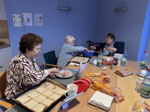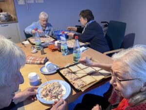 Besonders schön war zu beobachten, wie selbstverständlich sich alle gegenseitig unterstützten. Die Aktivität förderte nicht nur die Feinmotorik und die Alltagskompetenzen, sondern stärkte auch das Gemeinschaftsgefühl. Während der Zubereitung entstanden viele nette Gespräche und es wurde herzlich gelacht.
