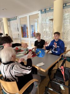 Besonders gut angekommen ist ein Bewegungsspiel mit Würfeln: Die Bewohnerinnen und Bewohner durften würfeln und je nach Augenzahl eine kleine Bewegungsaufgabe ausführen. Von Beine strecken über Arme beugen bis hin zu einfachen gymnastischen Übungen war alles dabei. Mit viel Humor und gegenseitiger Unterstützung wurde gemeinsam gelacht und aktiv mitgemacht.