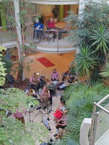 Gestern fand in unserem Haus ein wunderschönes Herbstfest statt. Im stimmungsvoll geschmückten Atrium sorgten Gertrud Braun mit ihren Blasmusikkollegen vom „Fäschen Blech“ für beste Unterhaltung. Ihre schwungvollen Melodien erfüllten das ganze Haus – von der Eingangshalle bis in die oberen Stockwerke war die Musik zu hören, und überall blickte man in fröhliche Gesichter.