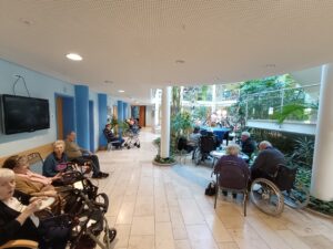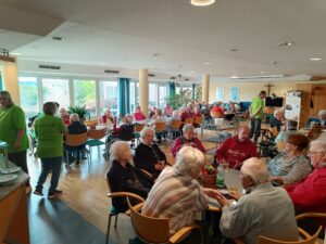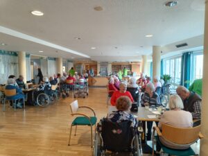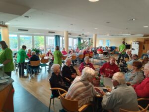 Viele unserer Bewohnerinnen und Bewohner, Angehörige und Gäste versammelten sich, um gemeinsam zu feiern. Im Café duftete es verlockend nach Zwetschgenkuchen, dazu wurde Apfelwein ausgeschenkt – ein echter Genuss, der perfekt zur herbstlichen Stimmung passte.