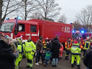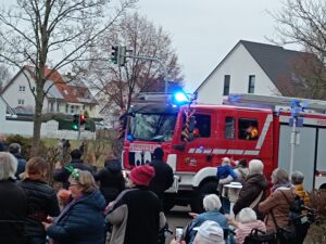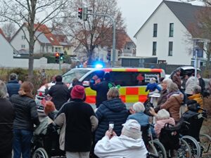 Schon lange im Voraus war angekündigt, dass auch in diesem Jahr die Lichterfahrt einen Stopp an unserem Haus einlegen würde. Die Vorfreude war groß – und die Werbung hatte sich gelohnt: Pünktlich zum Beginn versammelten sich zahlreiche Familien mit Kindern, Nachbarn sowie Angehörige vor unserem Haus, um dieses besondere Ereignis gemeinsam zu erleben.