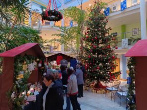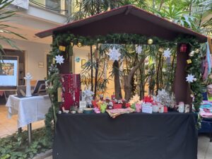 Parallel dazu hatte unsere stellvertretende Einrichtungsleiterin Frau Arnholdt gemeinsam mit ihrem Team im Haus einen liebevoll gestalteten Adventsbasar aufgebaut. Bei frisch gebackenen Waffeln und wärmendem Punsch konnten Gäste und Bewohner die festliche Atmosphäre genießen.