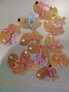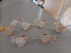 Mit viel Kreativität und Freude wurden Osterhasen ausgeschnitten sowie liebevoll gestaltete Hühnchen aus Pappbechern gefertigt, die später befüllt werden konnten. Neben dem gemeinsamen Spaß stand dabei auch die Förderung der haptischen Fähigkeiten im Mittelpunkt.