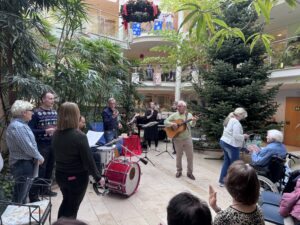 Am vergangenen Sonntag durften sich unsere Bewohnerinnen und Bewohner über einen ganz besonderen Adventsnachmittag freuen. Die Enkelin unserer Bewohnerin Frau Hauck, Nina, besuchte uns gemeinsam mit ihrer Band und bescherte dem ganzen Haus ein stimmungsvolles kleines Weihnachtskonzert.